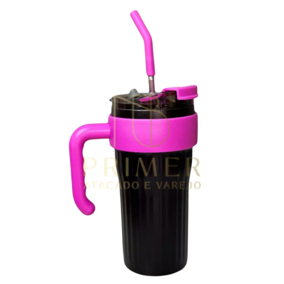 Além disso, sua praticidade é incomparável, com alça e canudo em inox para facilitar o uso, e uma tampa segura para evitar vazamentos indesejados.