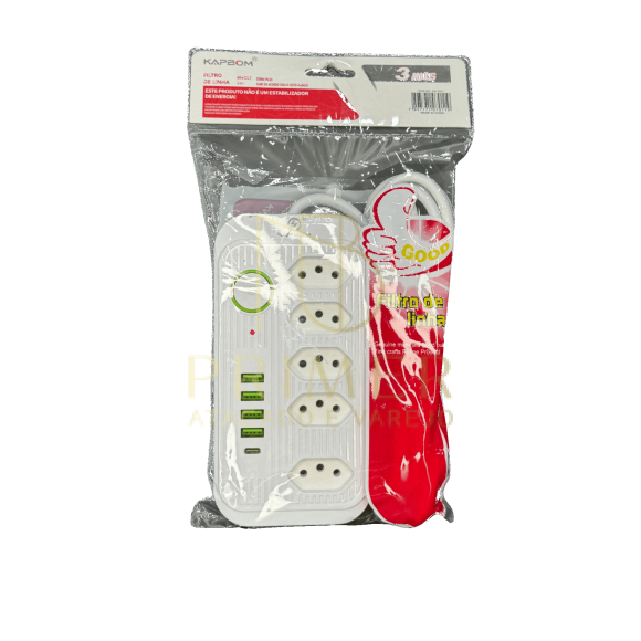 Desfrute da praticidade e segurança oferecidas pelo Filtro de Linha de 3 metros da Kapbom. Com 5 tomadas tripolares, 4 portas USB, é a solução completa para seus aparelhos eletrônicos.